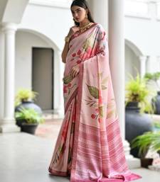 | Product Name | Pink Soft Pure Satin Silk Saree With Hand Painted Floral Design & Zari Border | |