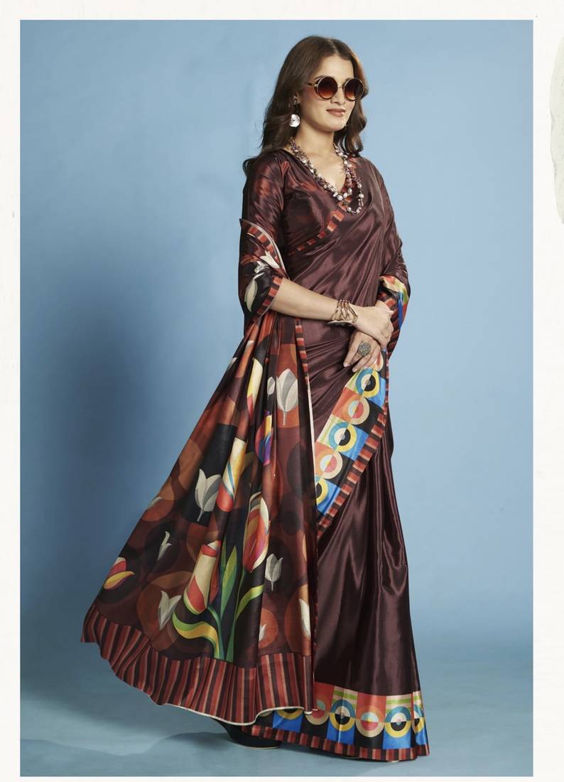 | • | Saree | : | Color- Brown / Fabric- Crepe |