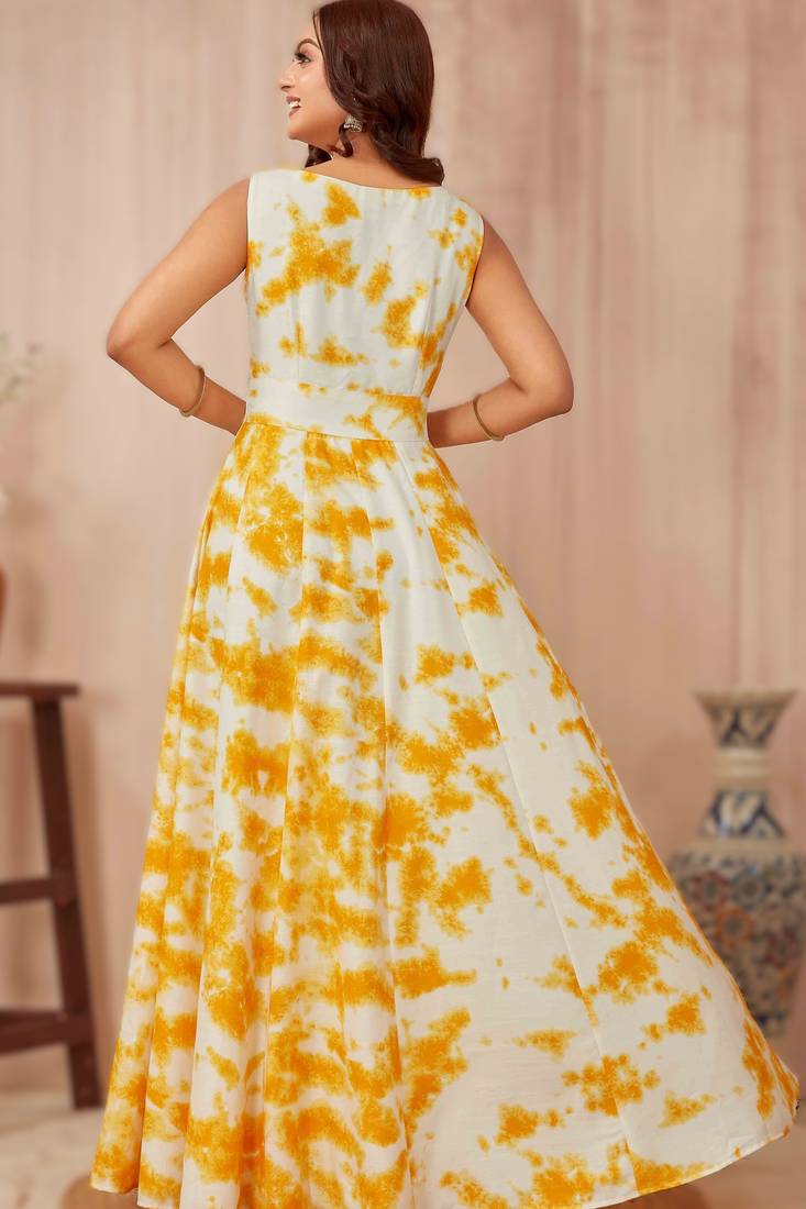Yellow shibori mirror work anarkali stitched