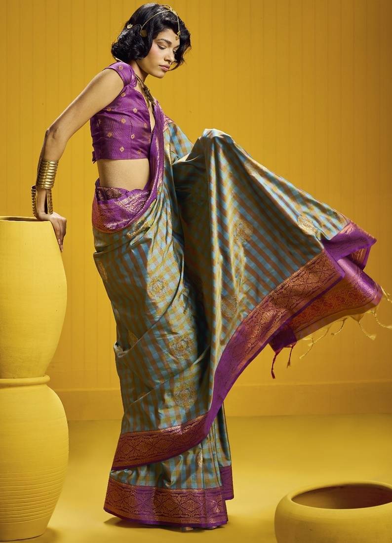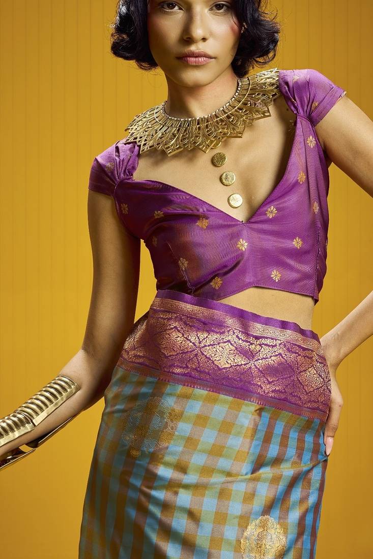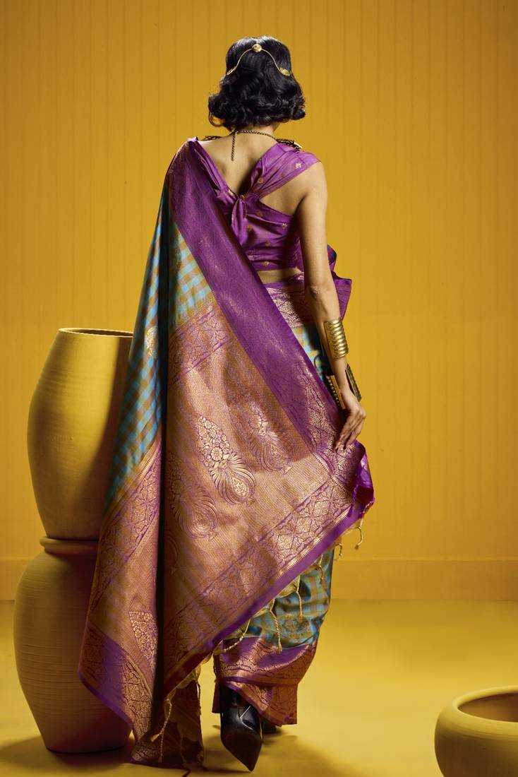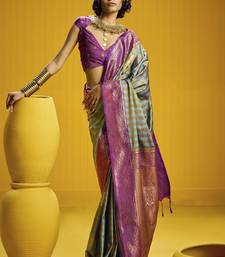 Traditional handloom pure silk saree with checks pattern & matching blouse