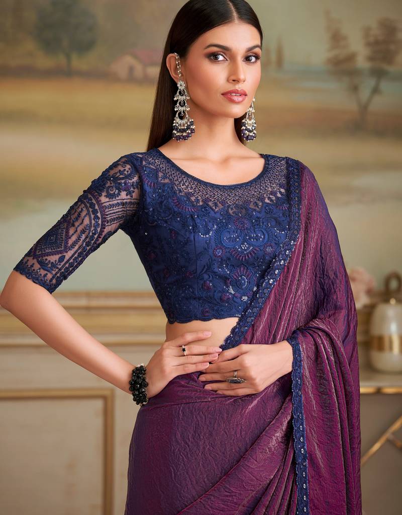| • | Saree | : | Color- Purple / Fabric- Georgette |