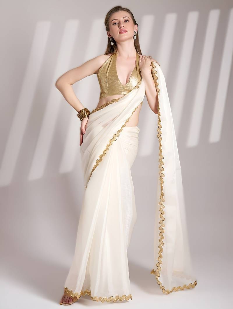 Product Name White Bollywood Style Designer Soft Organza Saree With Sequins Lace Border