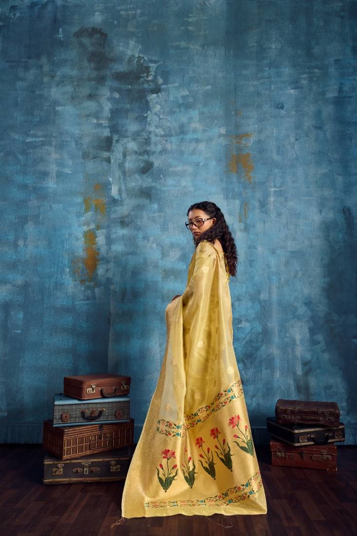 Yellow color luxurious zari tissue handloom saree – classic ethnic collection