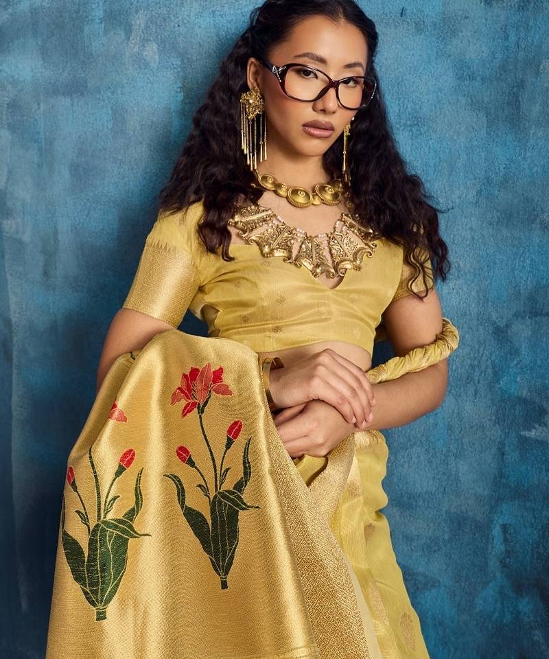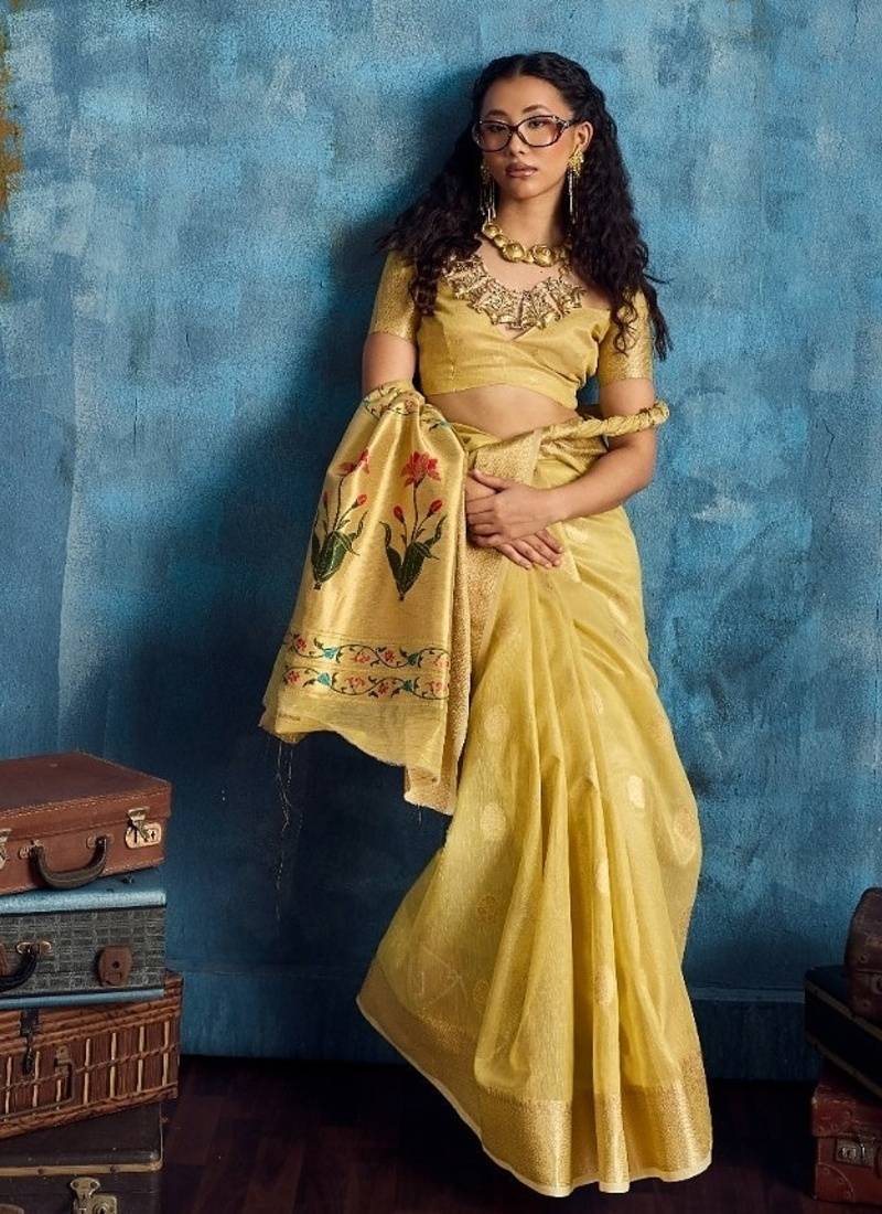 | Product Name | Yellow Color Luxurious Zari Tissue Handloom Saree – Classic Ethnic Collection | |