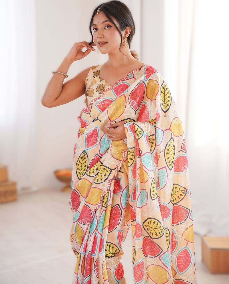 | Embellish | Add Elegance To Your Wardrobe With This Stylish Printed Saree, Perfect For Festive And Party Wear. | |