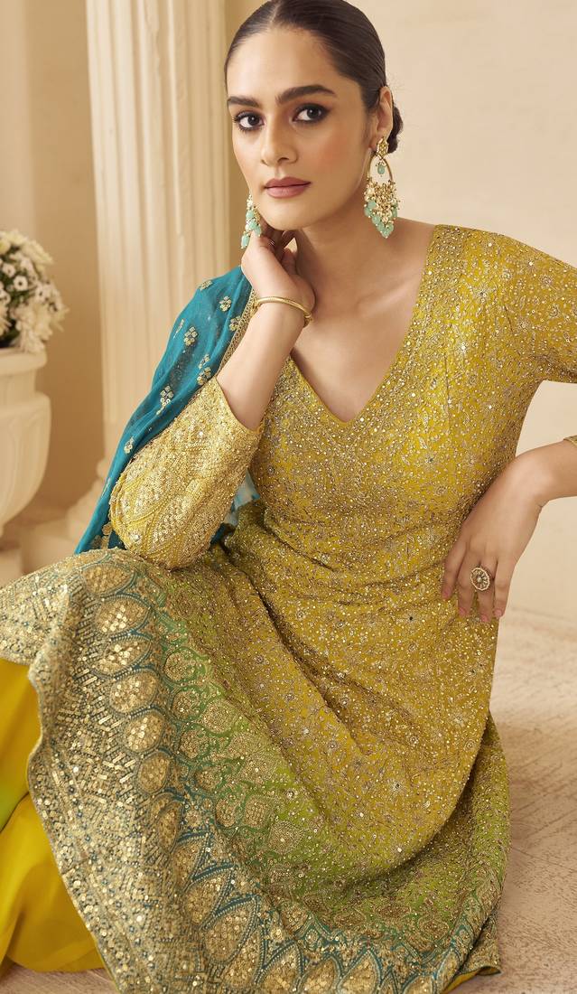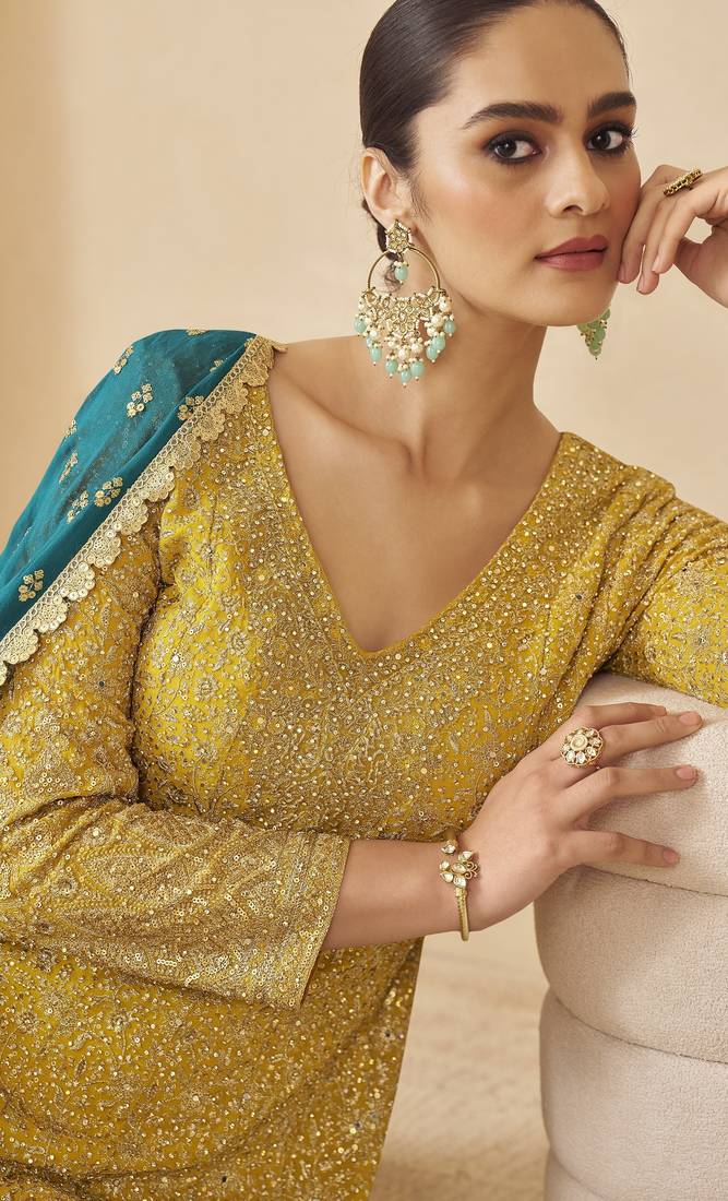 | Product Name | Yellow Ready To Wear Heavy Georgette Embroidered Salwar Kameez With Palazzo & Dupatta Elegant Party Wear | |