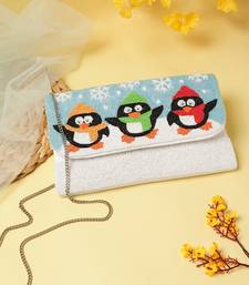 This Anekaant Embellished Sling Bag Is A Quirky And Festive Accessory Crafted In Aqua Blue, White, And Multicolour Shades, From The Beaded Muse Sling Bag Collection. Made From Durable Canvas With A Soft Polycotton Lining, This Bag Features Playful Beaded Embellishments With Adorable Penguins And Delicate Snowflake Details. Designed With One Main Compartment Secured By A Magnetic Button Closure, It Includes An Inner Slip Pocket And A Detachable Chain Strap For Styling As A Clutch Or Crossbody. Compact, Lightweight, And Fun—It’s Perfect For Festive Outings And Winter Inspired Looks. Dimensions (L X H X W): 24 X 15.5 X 2 Cm.