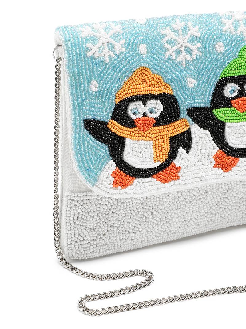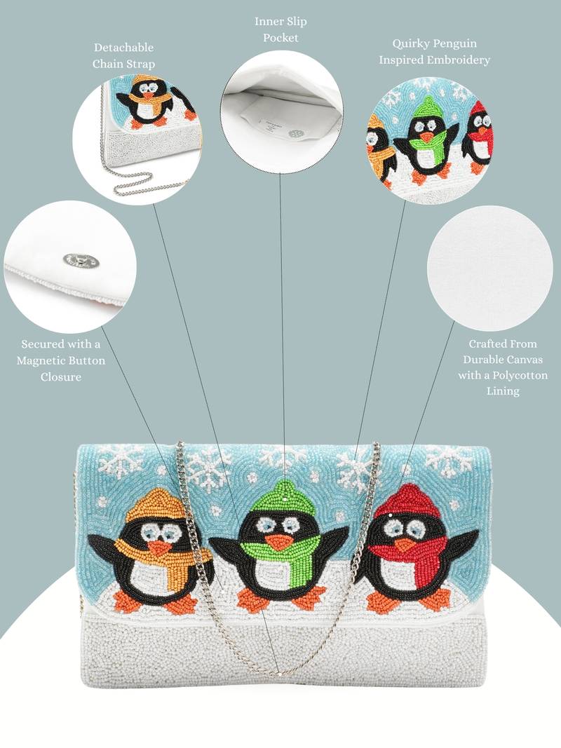 Pattern : Quirky Beaded Embellishment With Adorable Penguins And Intricate Snowflake Detailing.