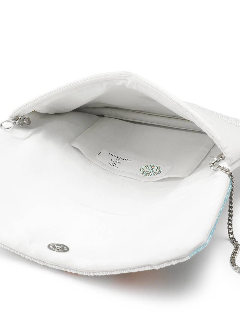 Anekaant beaded muse aqua blue, white & multi quirky beaded canvas sling bag
