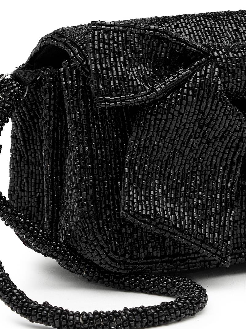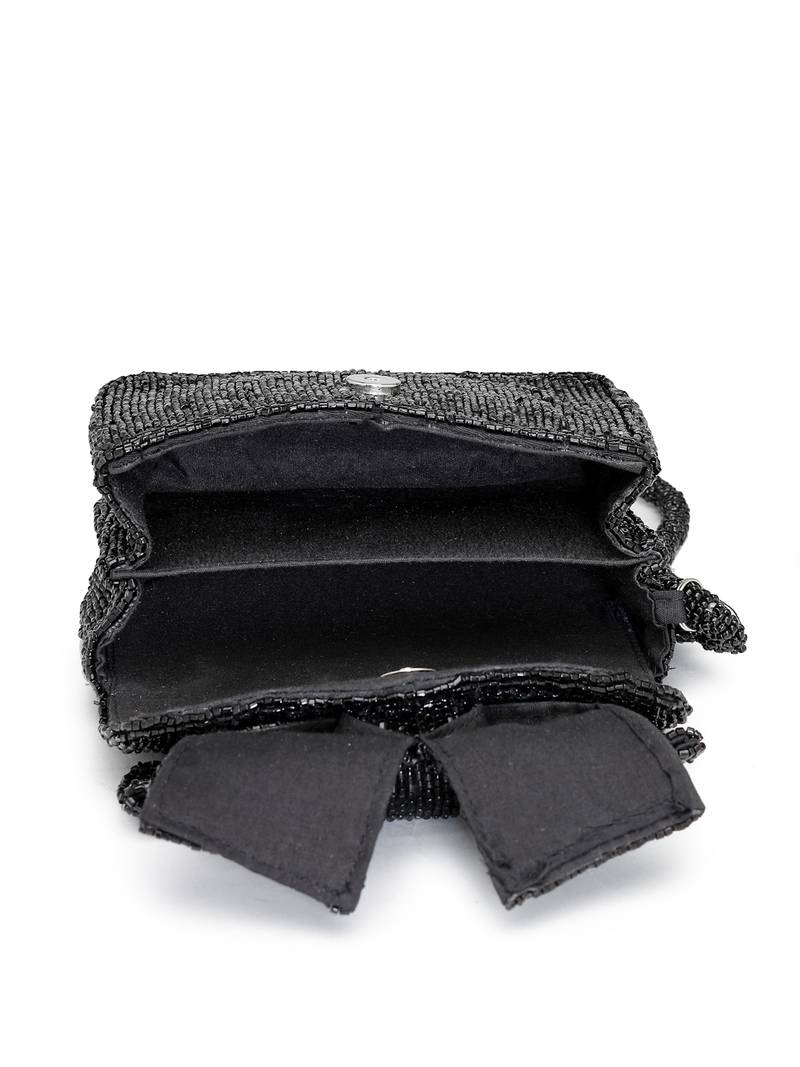 Pattern : Statement Bow Embellished Design Crafted Entirely With Fine Black Beads.