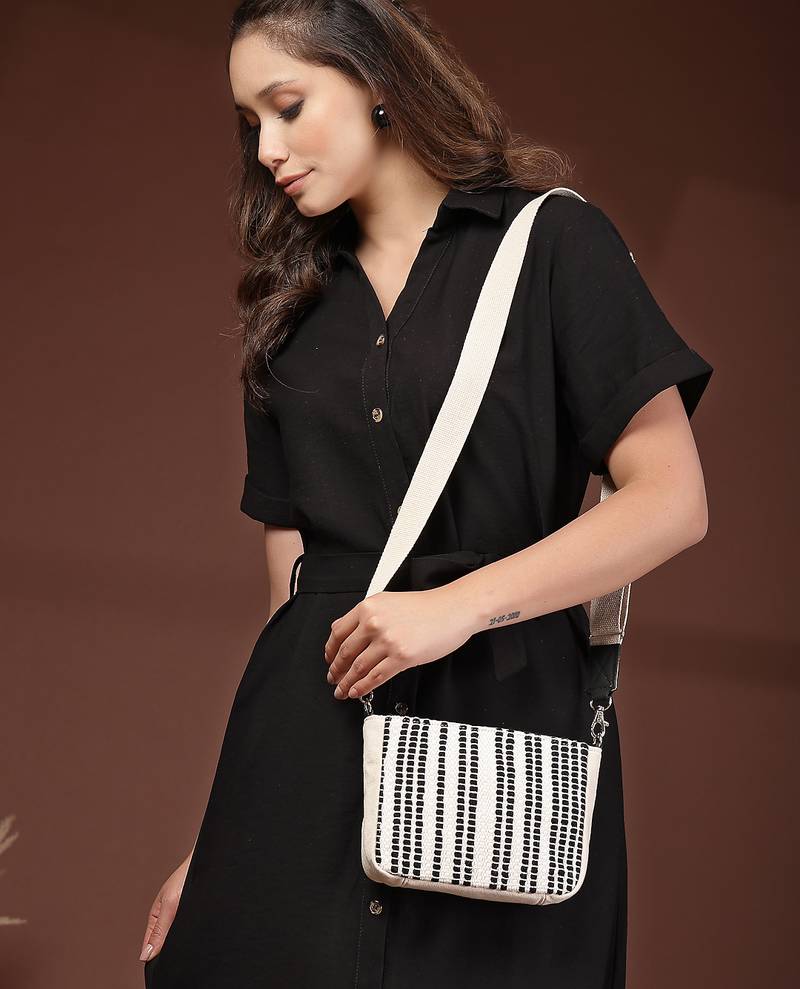 | Product Name | Anekaant Earth Edit Off White & Black Jacquard Striped Sling Bag | |