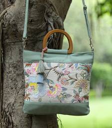 Product Name | Petal Posh Sage Green Cotton Botanical Embellished Handheld Bag | |