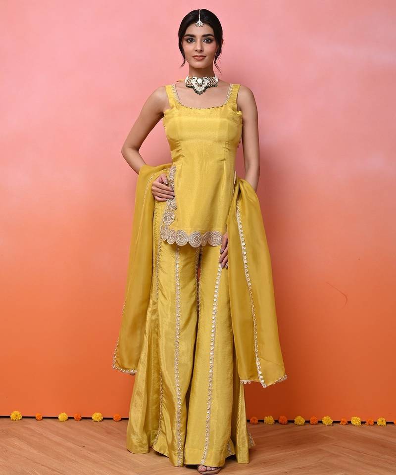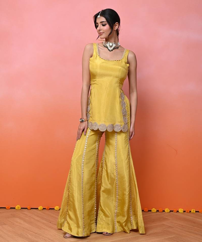 Yellow kurti sharara set