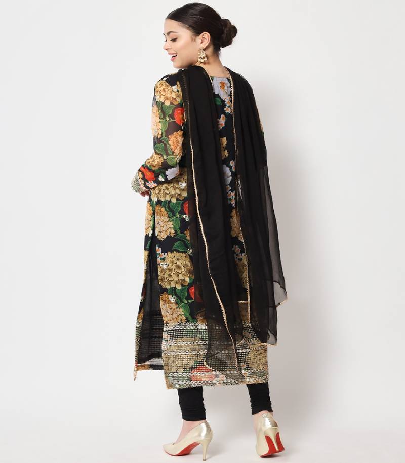 | Product Name | Black Floral Printed Embroidered Kurti With Churidaar And Dupatta | |