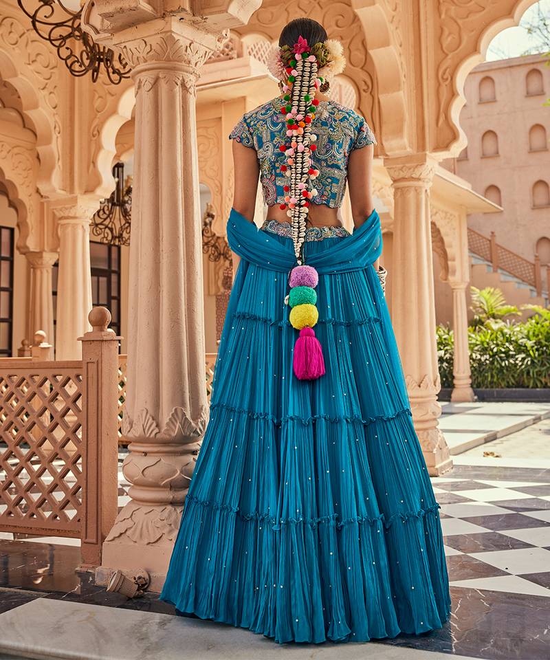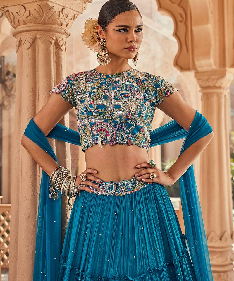 Blue embroidered silk lehenga set