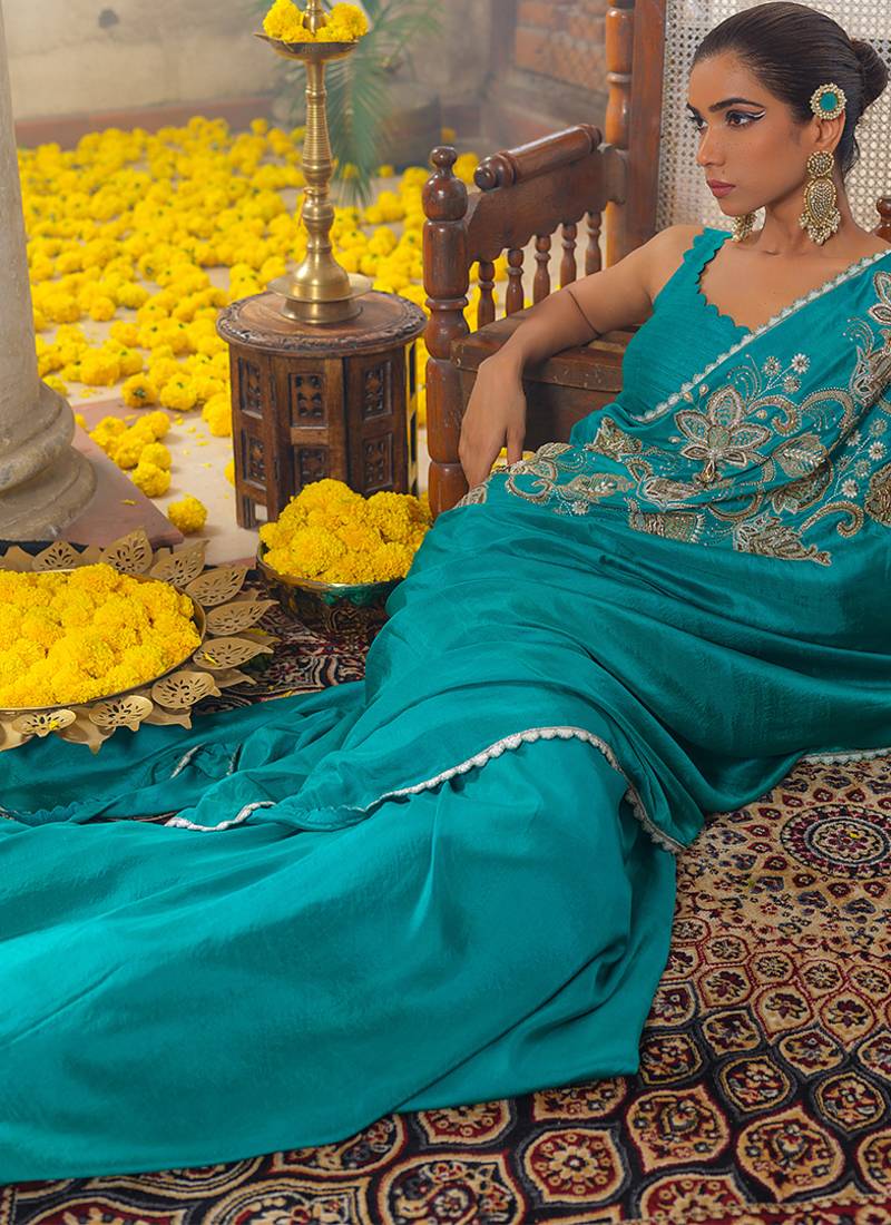| Product Description | Elegant Blue Embroidered Silk Saree Crafted In A Rich, Lustrous Fabric With A Smooth And Graceful Drape. Intricate Embroidery Enhances Its Traditional Charm And Festive Appeal, Creating A Refined Silhouette. Perfect For Weddings, Festive Celebrations, Parties, And Special Occasions That Demand Timeless Elegance.