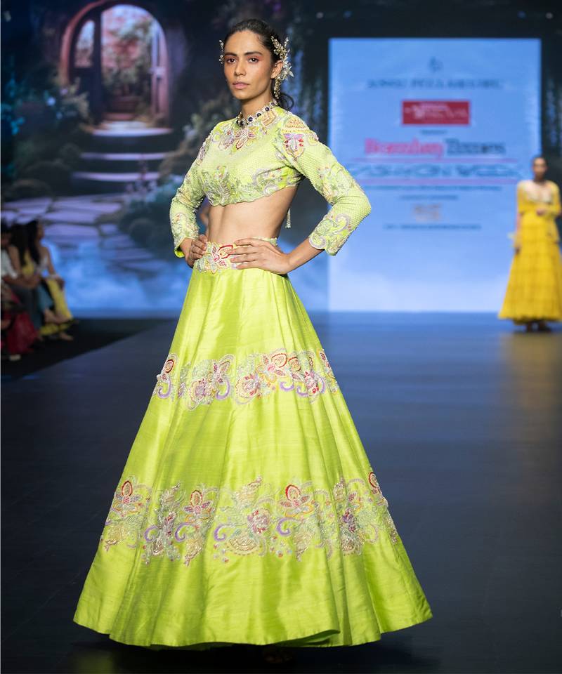Green embroidered silk lehenga set