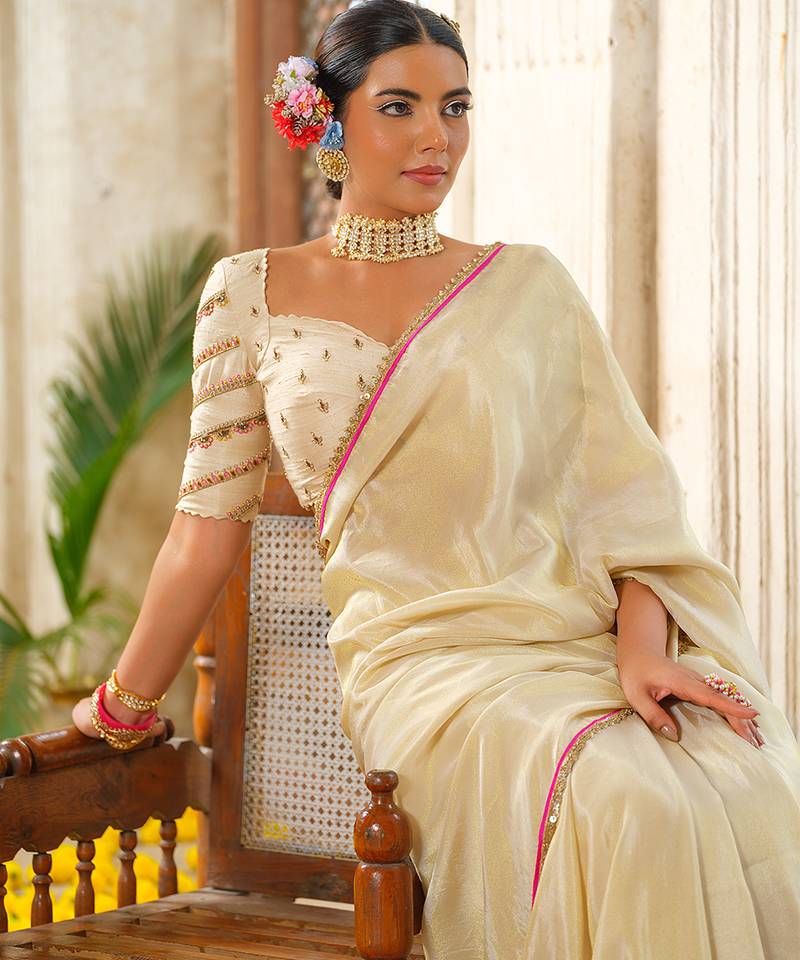 | Product Name | Ivory Embroidered Tissue Silk Saree | |