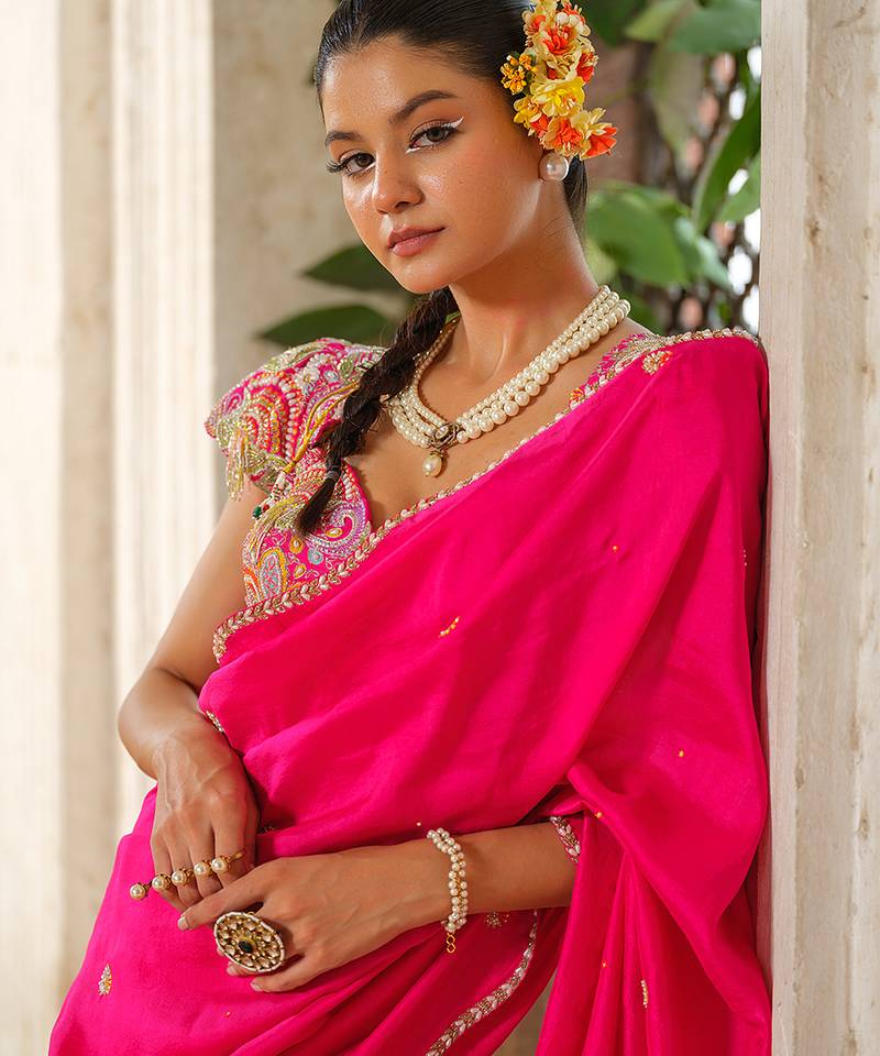 | • | Blouse | : | Color- Pink / Fabric- Raw Silk |