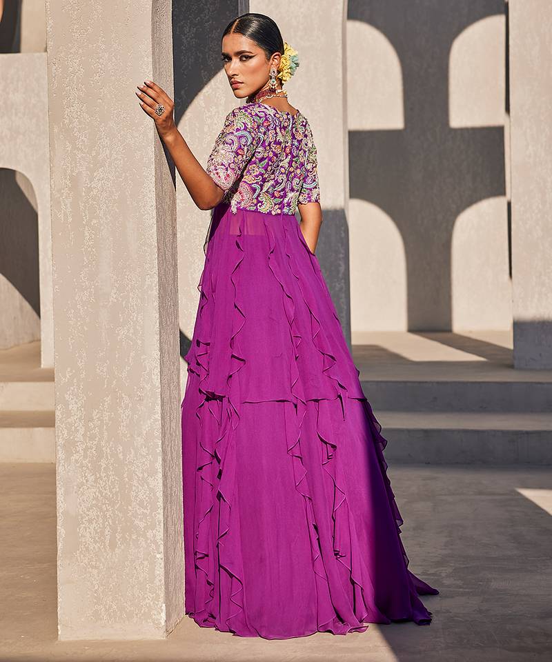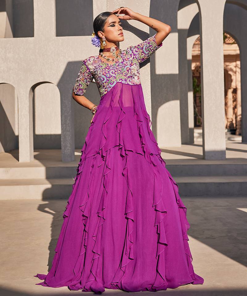 | Product Description | Purple Embroidered Raw Silk Anarkali Crafted In Luxurious Raw Silk And Adorned With Intricate Traditional Embroidery. The Rich Purple Hue Enhances Its Regal Appeal, While The Flared Silhouette Creates Graceful Movement. Paired With A Matching Dupatta, This Anarkali Is Ideal For Weddings, Festive Celebrations, And Elegant Evening Occasions.