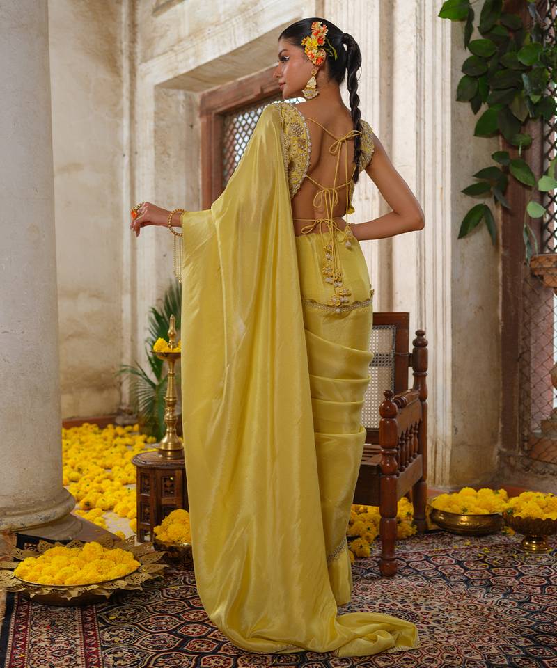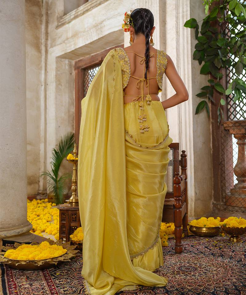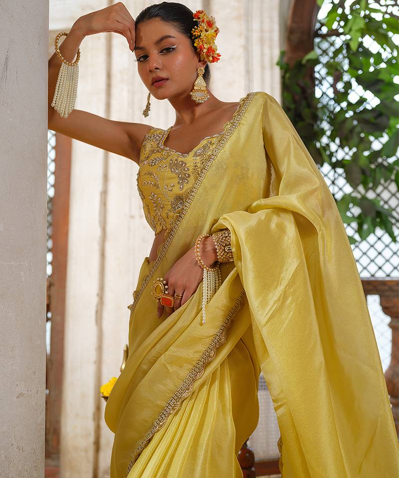 | Product Description | Illuminate Any Room With This Yellow Embroidered Tissue Silk Saree. Bathed In A Vibrant, Sun Kissed Hue, The Signature Metallic Luster Of Tissue Silk Provides A Radiant Glow. Adorned With Delicate Embroidery And Fine Craftsmanship, It Offers A Crisp Yet Fluid Drape That Perfectly Captures The Spirit Of Festive Joy.