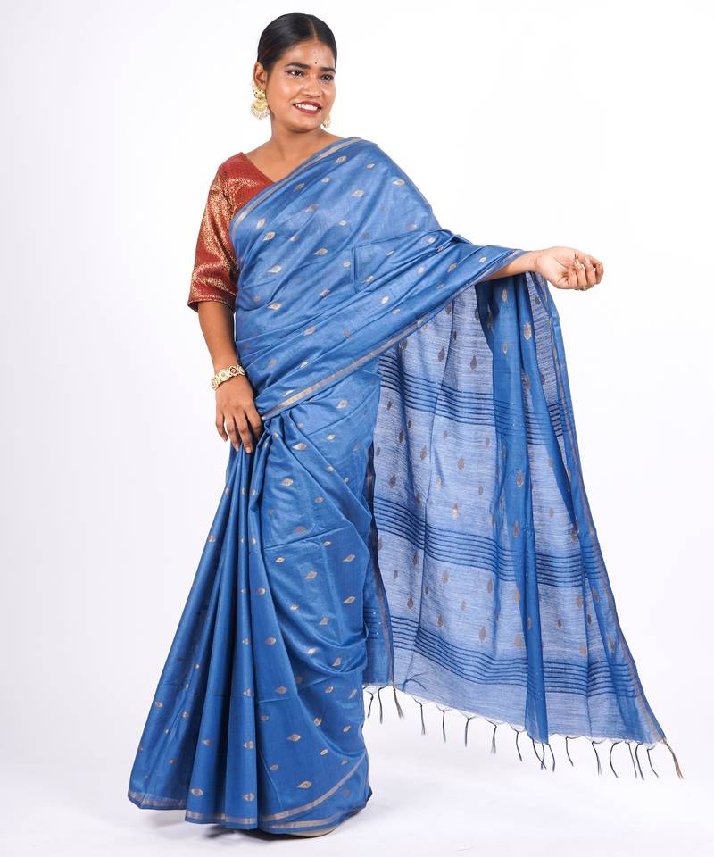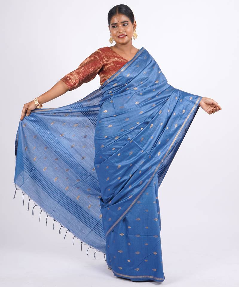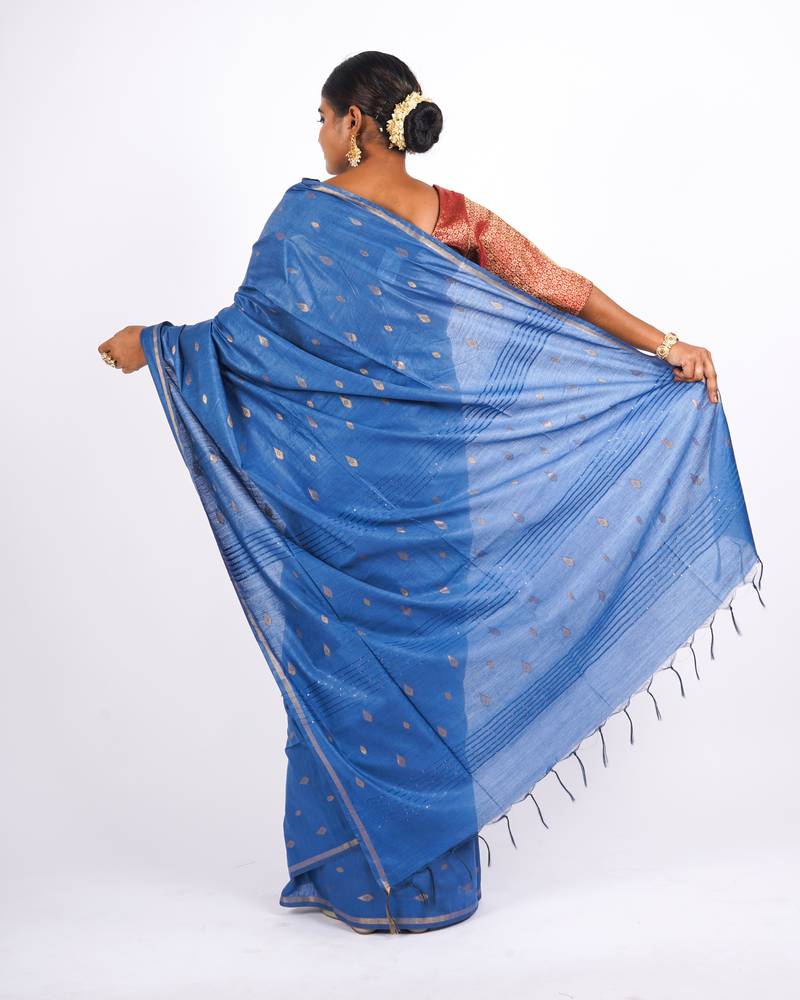 | Product Name | Blue Zari Work, Sequence Cotton Silk Blend Bhagalpuri Ethnic Saree With Unstitched Blouse | |