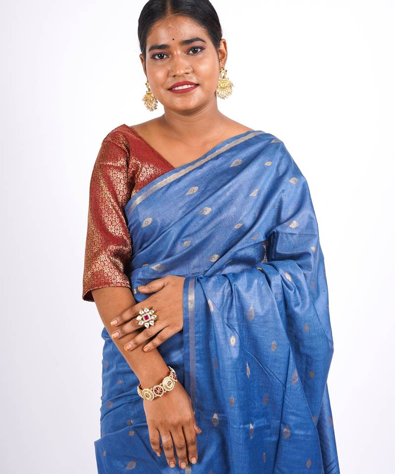 | Product Description | Enhance Your Ethnic Elegance With This Anuttara Women’s Bhagalpuri Cotton Silk Saree In A Classic Blue Shade. Designed With Zari Buta Motifs, Sequin Embellishments, And Frill Detailing, This Saree Strikes The Perfect Balance Between Traditional Beauty And Festive Style. A Perfect Choice For Weddings, Receptions, And Cultural Celebrations.Crafted From Premium Bhagalpuri Cotton Silk, It Ensures Comfort, Lightweight Drape, And A Rich Look. |