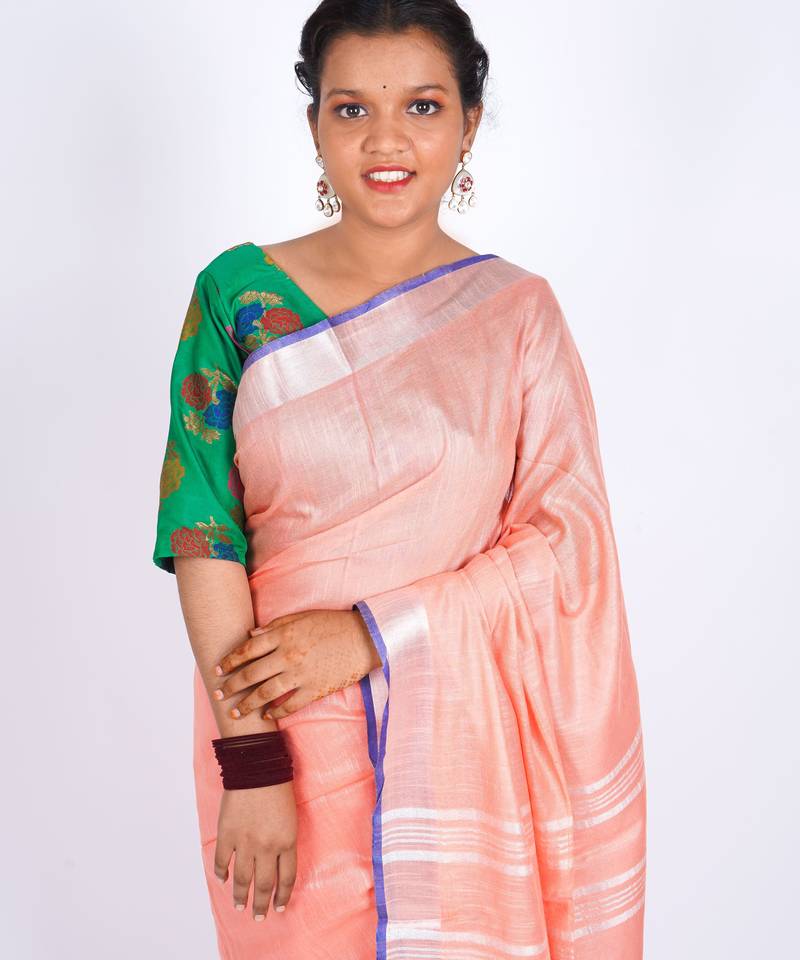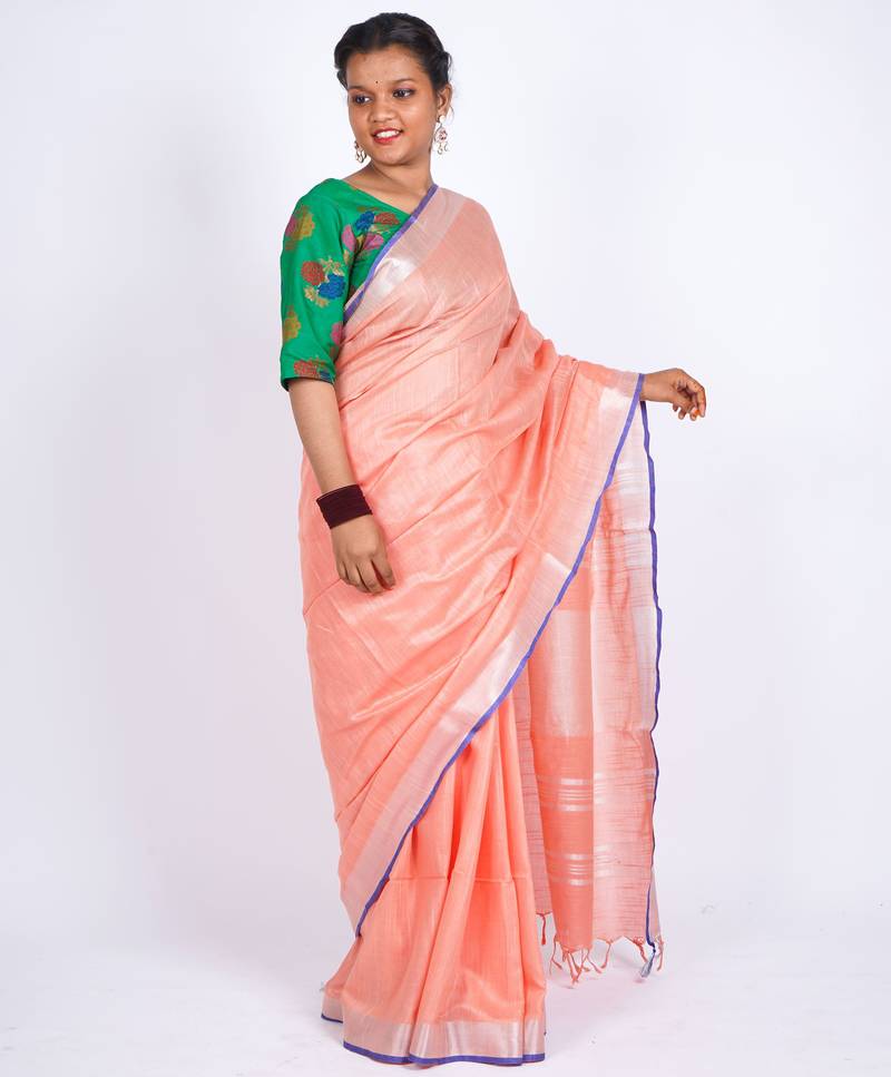 | • | Saree | : | Color- Peach / Fabric- Linen |