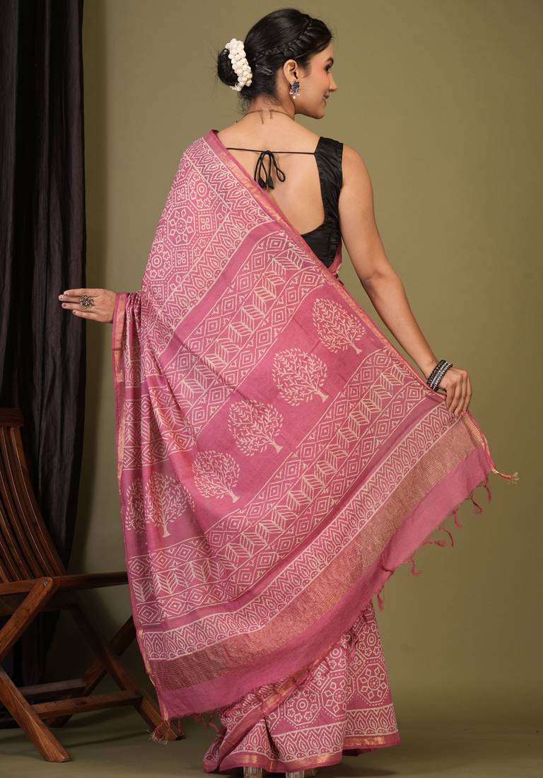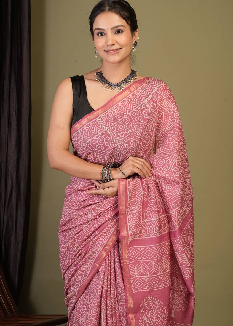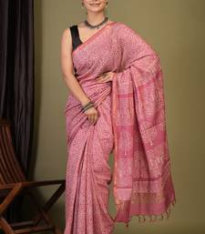 Pink zari work, tassle cotton silk blend bhagalpuri ethnic saree with unstitched blouse