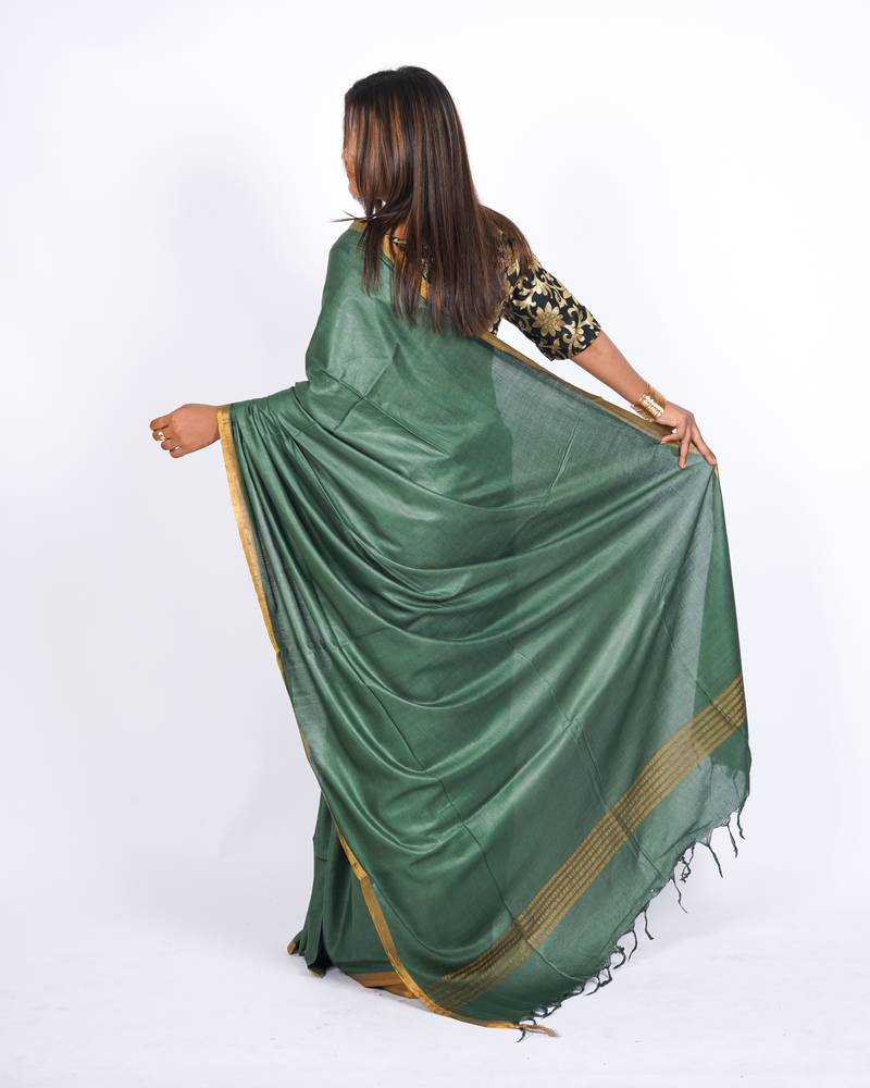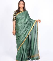 Rama green zari work blended cotton staple bhagalpuri ethnic saree with unstitched blouse