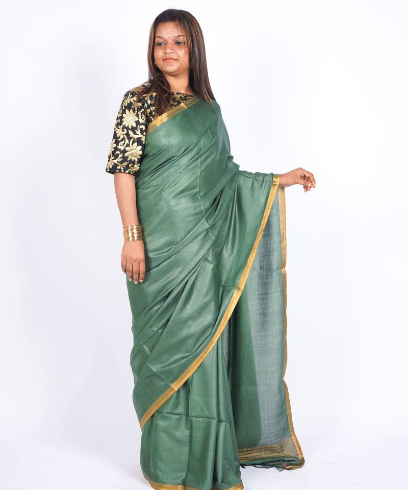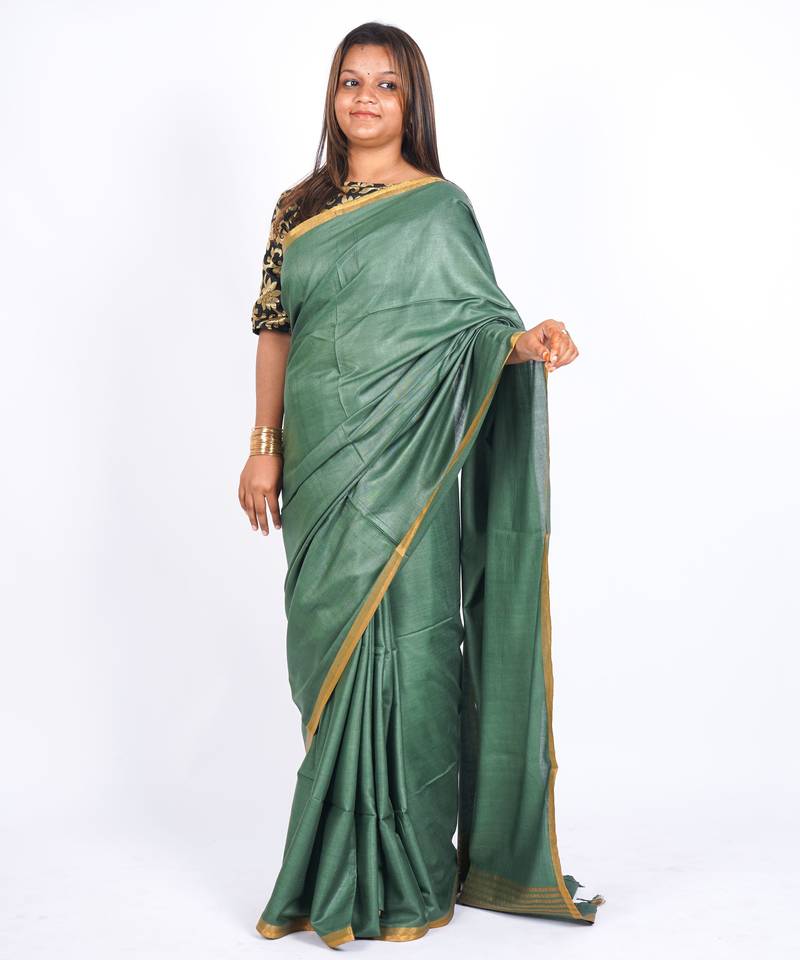 | Product Name | Rama Green Zari Work Blended Cotton Staple Bhagalpuri Ethnic Saree With Unstitched Blouse | |