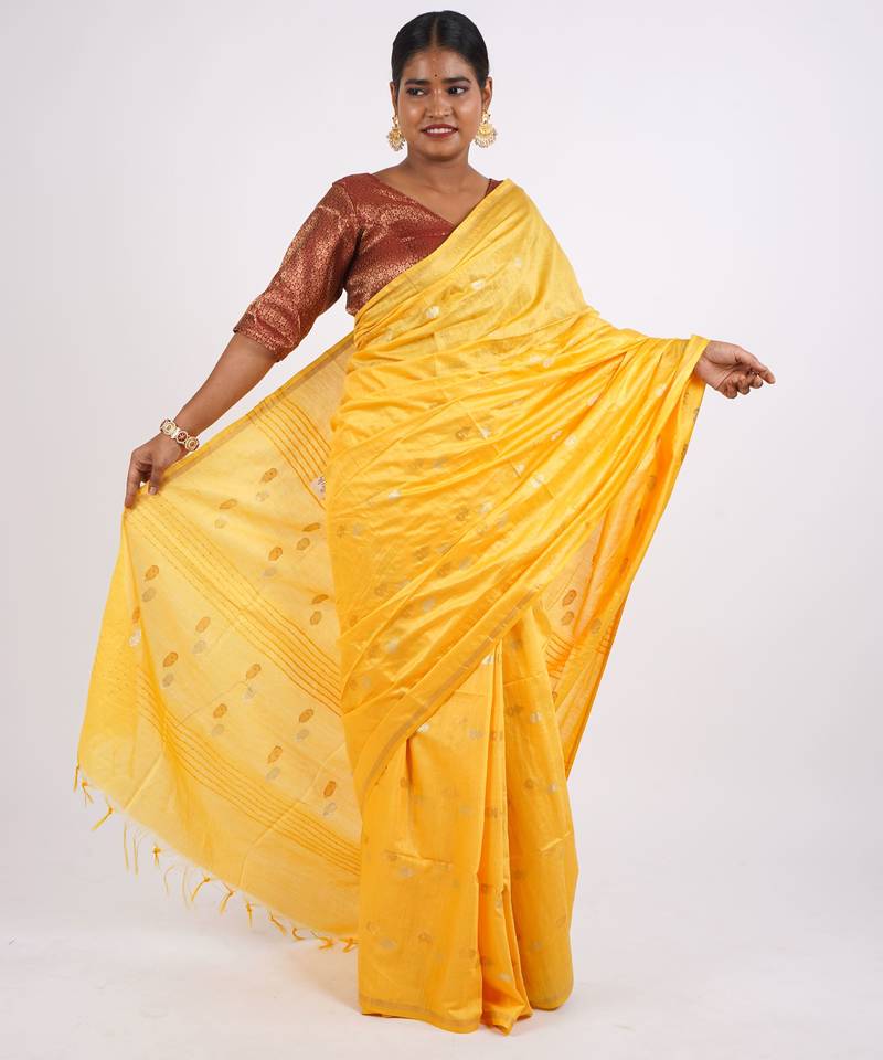 | Product Name | Yellow Zari Work, Sequence Cotton Silk Blend Bhagalpuri Ethnic Saree With Unstitched Blouse | |