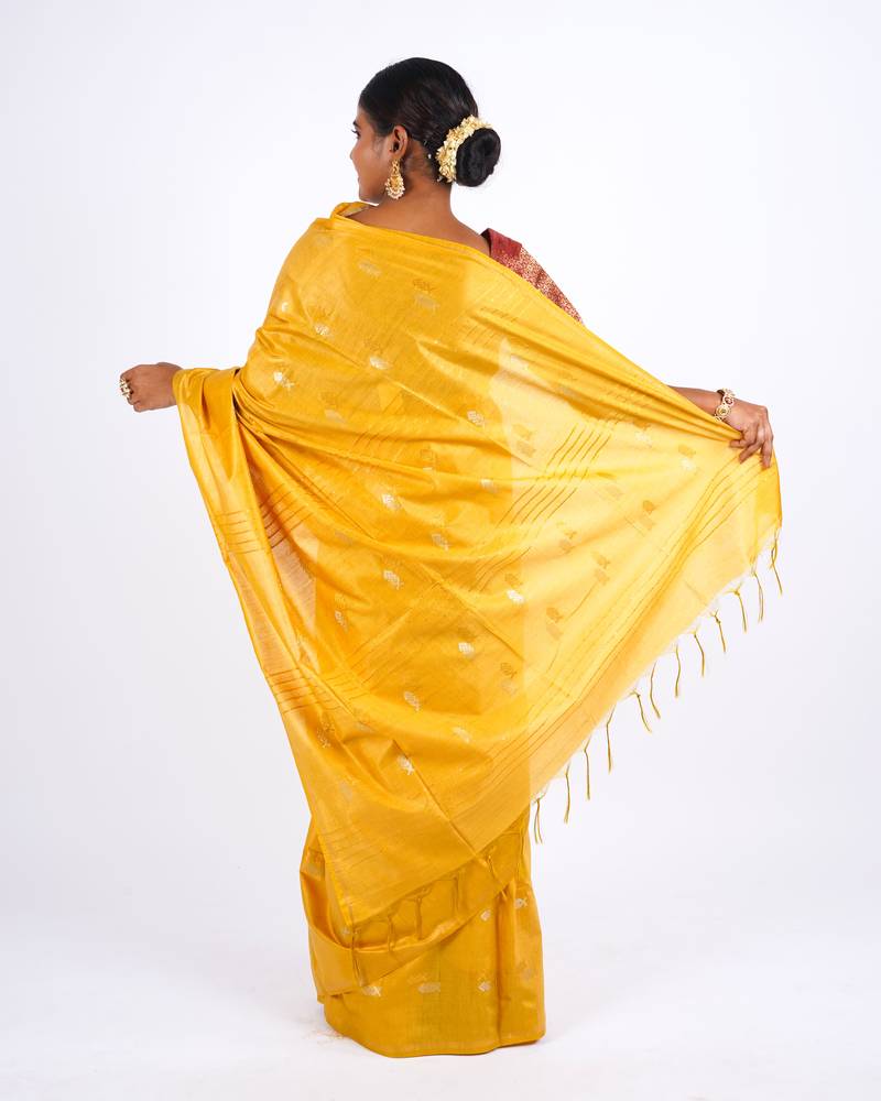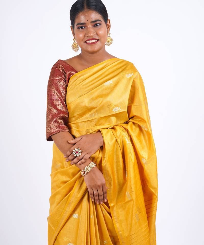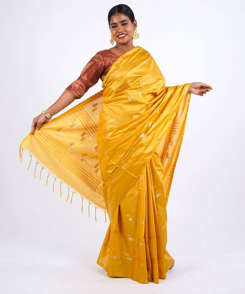 | Product Description | Shine With Festive Elegance In This Anuttara Women’s Bhagalpuri Cotton Silk Saree In A Vibrant Yellow Shade. Featuring Zari Buta Motifs, Sequins, And Fine Embellishments, This Saree Adds A Touch Of Traditional Richness With Modern Festive Appeal. The Frill Detailing Enhances Its Graceful Drape, Making It Perfect For Weddings, Parties, And Cultural Occasions.Crafted From Premium Bhagalpuri Cotton Silk, The Saree Is Lightweight, Soft, And Comfortable For All Day Wear. |