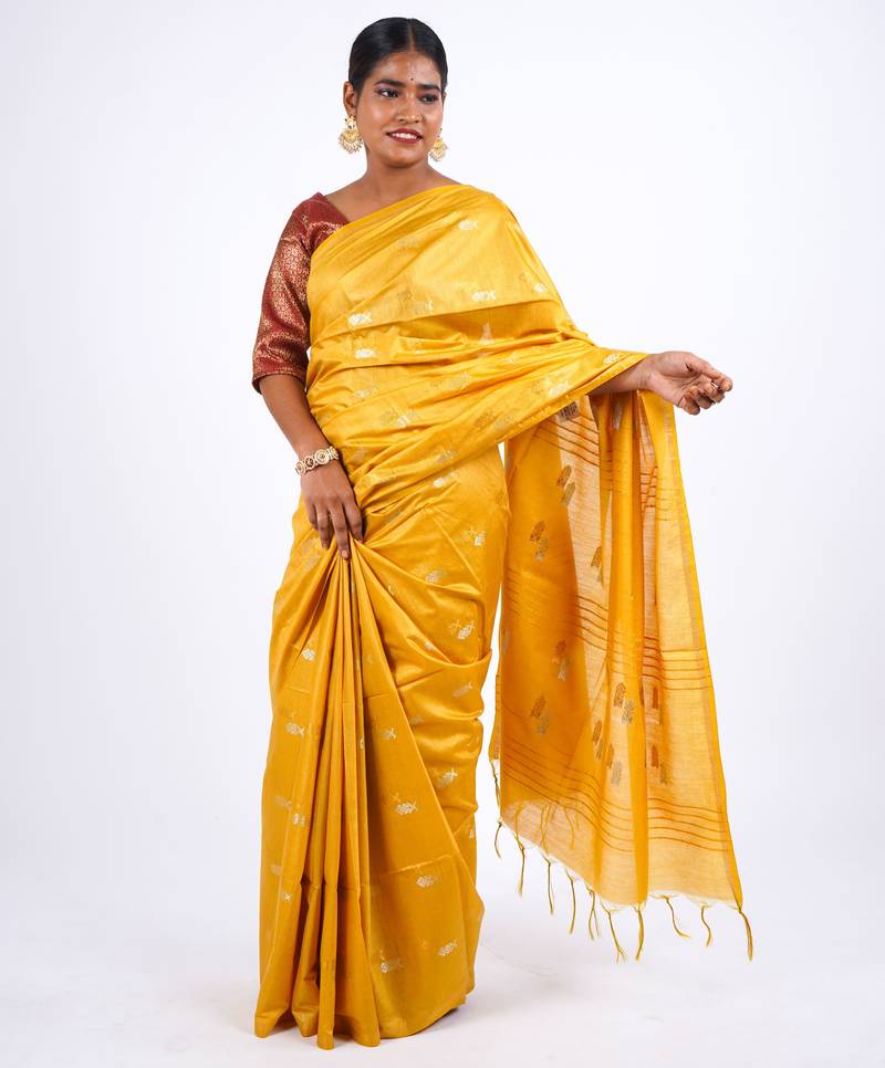 | Product Name | Yellow Zari Work, Sequence Cotton Silk Blend Bhagalpuri Ethnic Saree With Unstitched Blouse | |