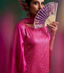 Rani pink embroidered satin kurta set