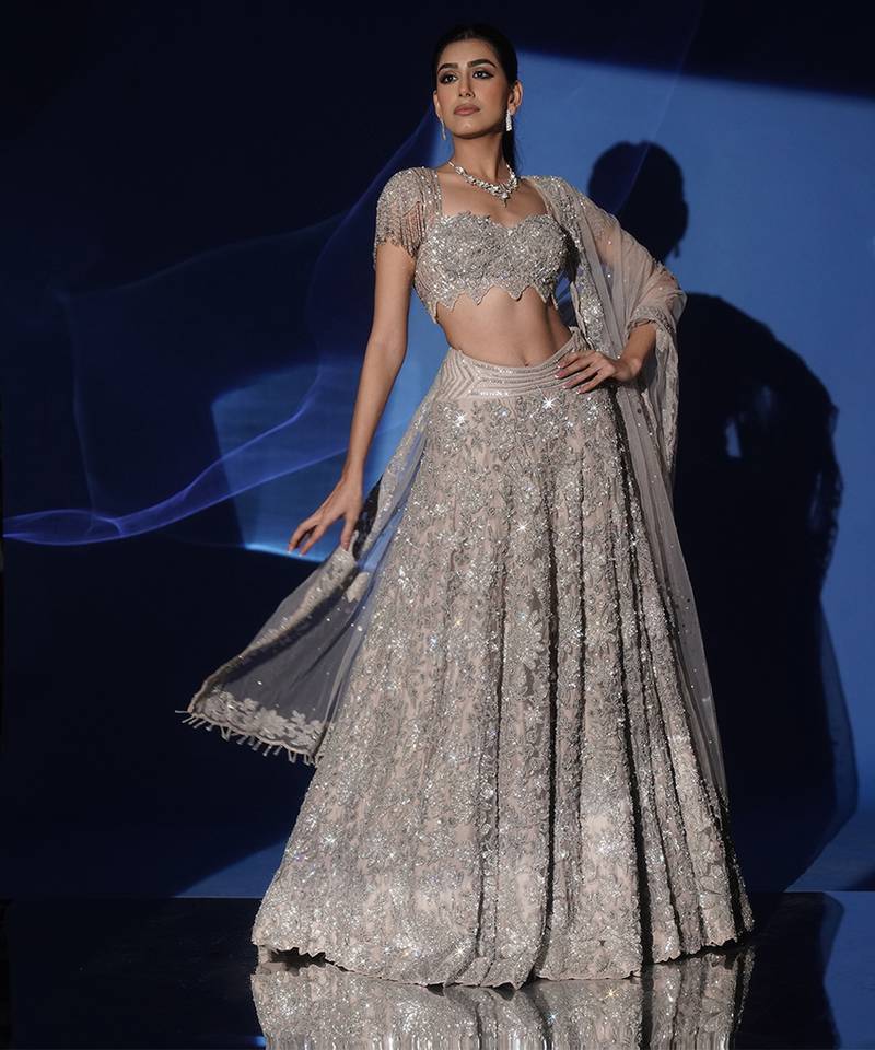 Grey embroidered net lehenga set