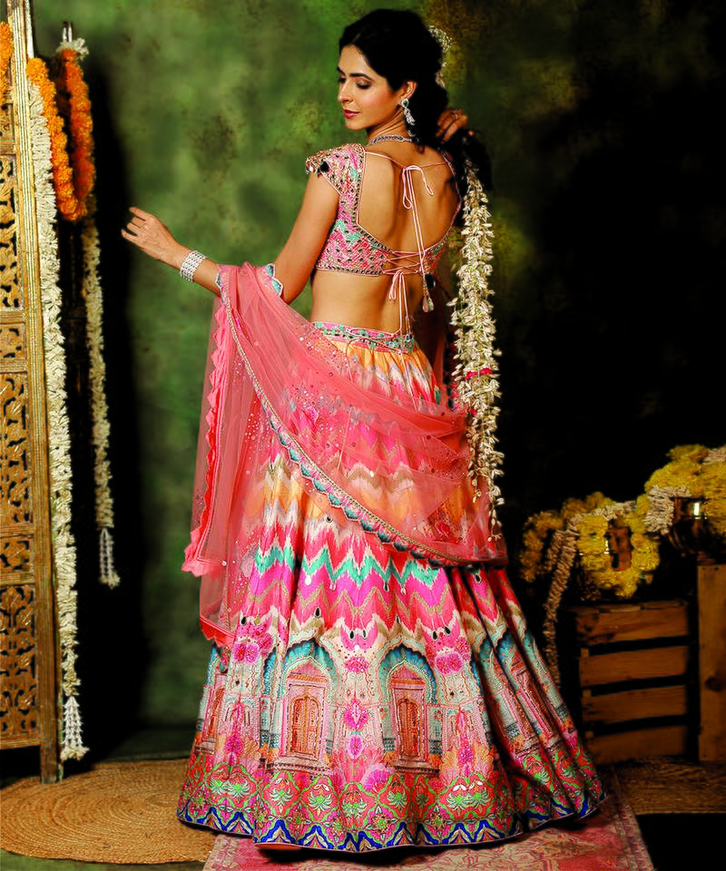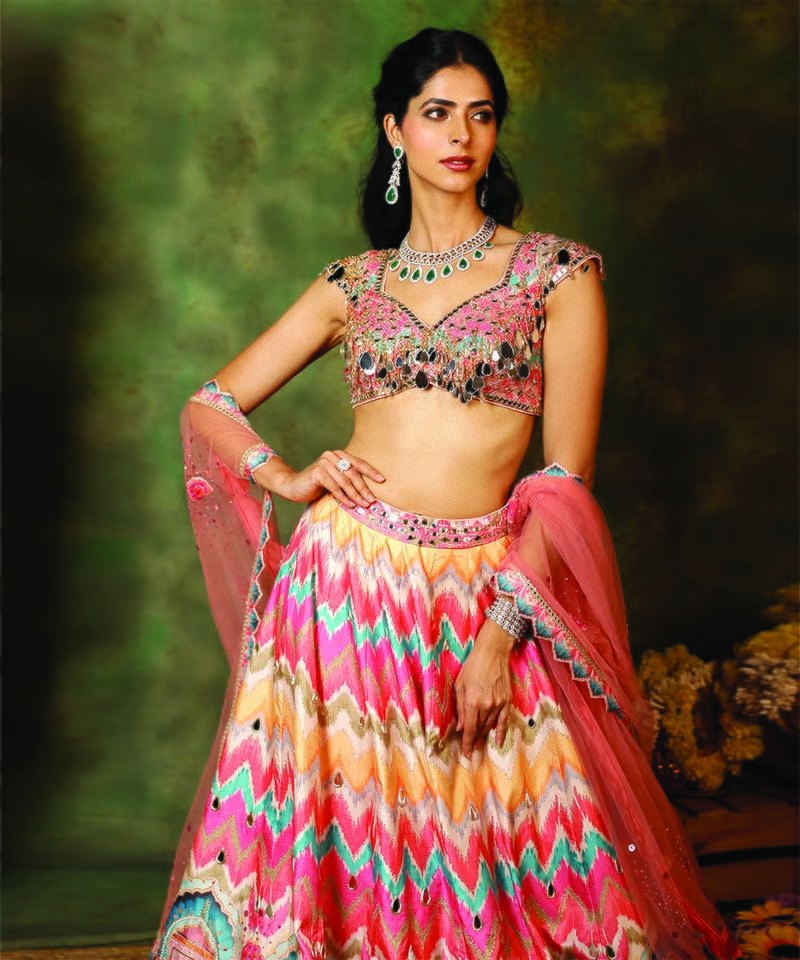 | Product Description | This Multicolor Raw Silk Lehenga Set Showcases Detailed Mirror Embroidery That Reflects Traditional Craftsmanship With A Modern Twist. The Luxurious Texture And Graceful Flare Create An Elegant Silhouette. Ideal For Festive Occasions, It Pairs Effortlessly With Bold Accessories For A Radiant And Eye Catching Ensemble.