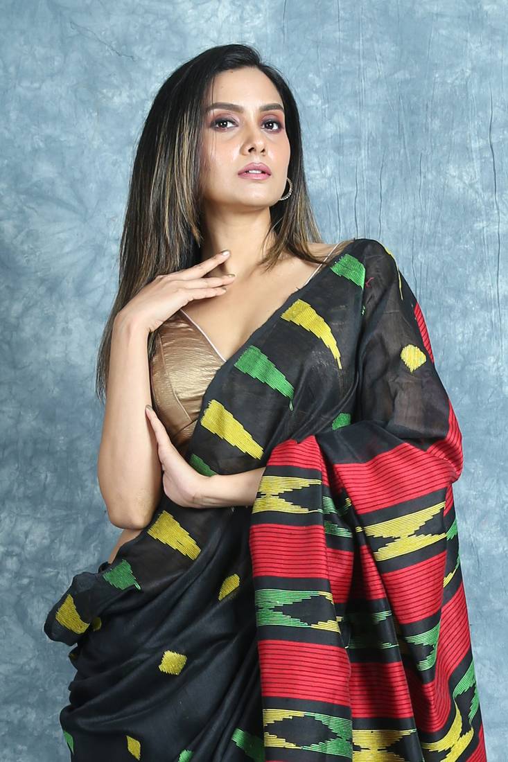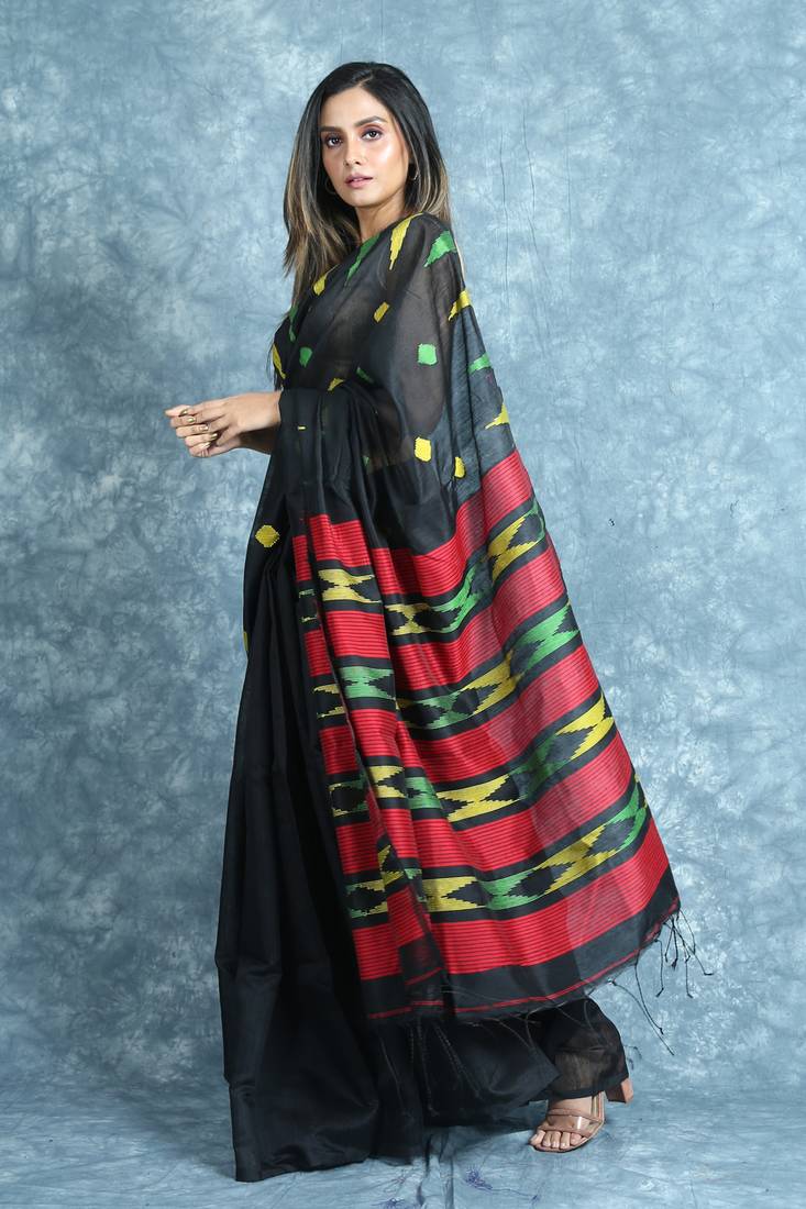 Product Name Black Woven Blended Cotton Saree With Blouse