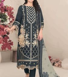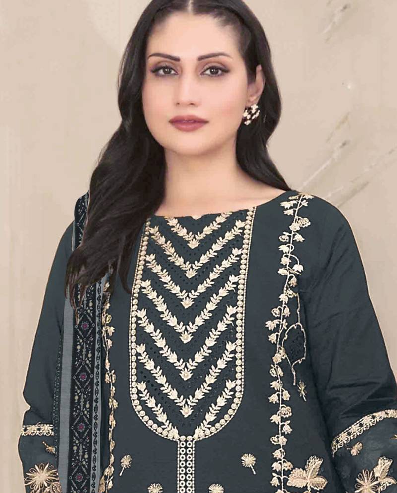 Dark grey color embroideried faux georgette semi stitched salwar suit unstitched