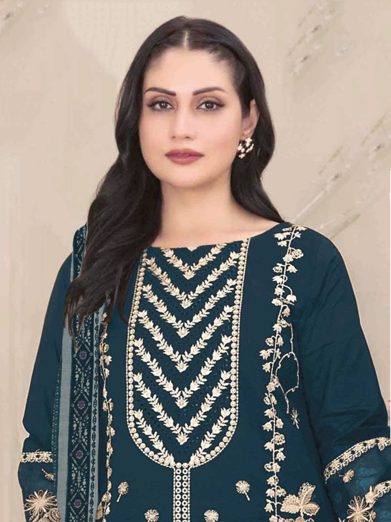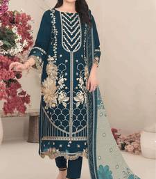 Dark teal color embroideried faux georgette semi stitched salwar suit unstitched