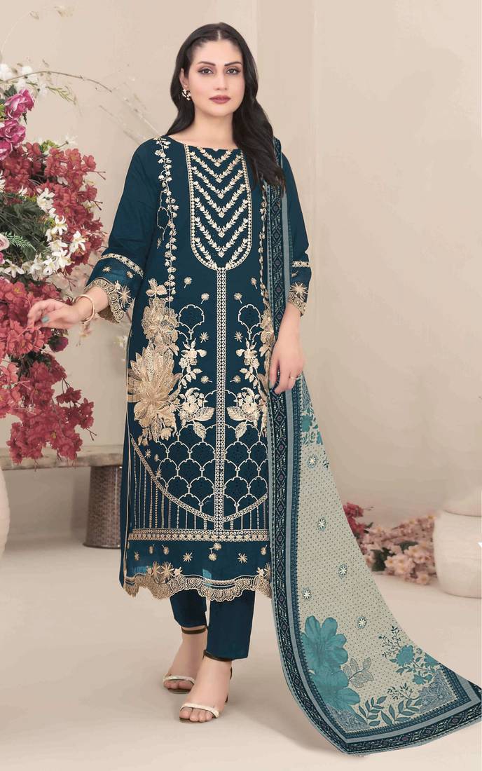 | Product Name | Dark Teal Color Embroideried Faux Georgette Semi Stitched Salwar Suit | |