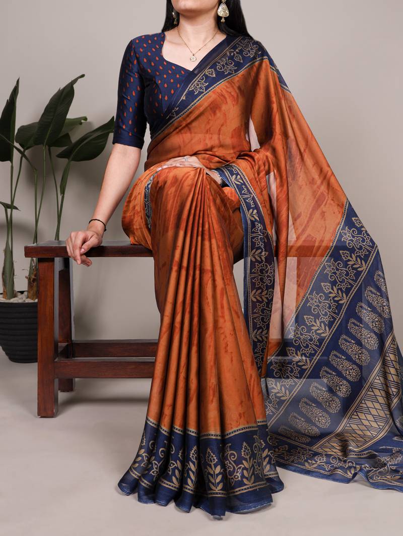 | • | Saree | : | Color- Rust / Fabric- Art Silk |