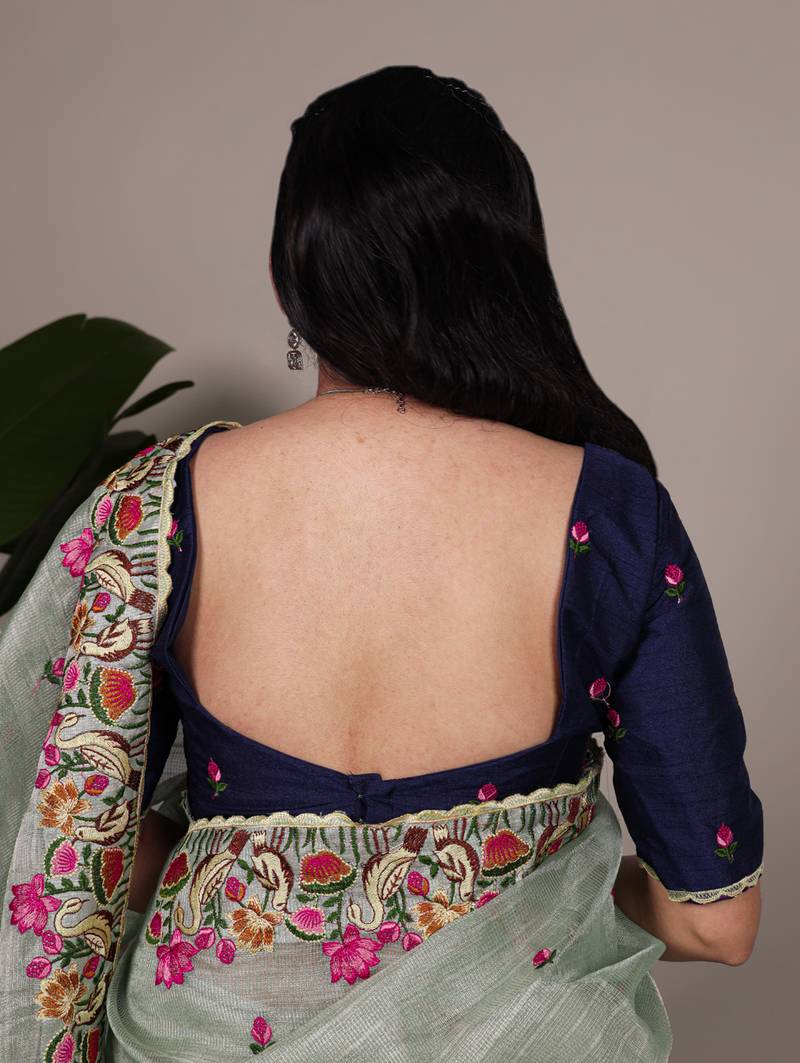 | • | Blouse | : | Color- Navy Blue / Fabric- Dupion Silk |