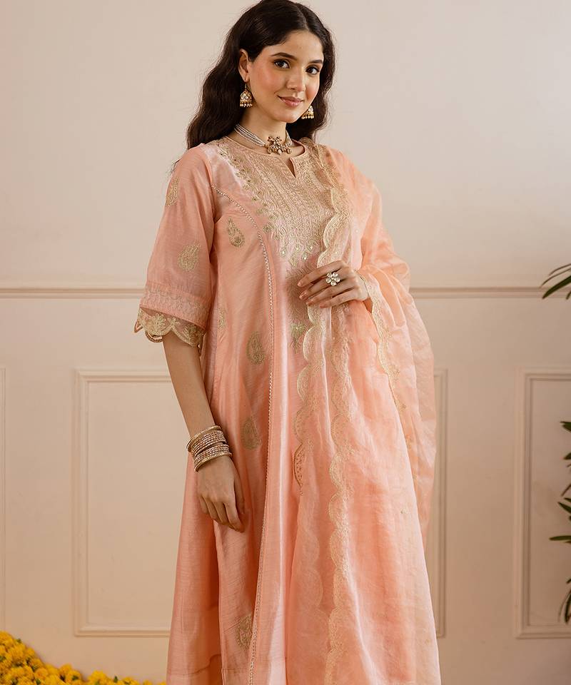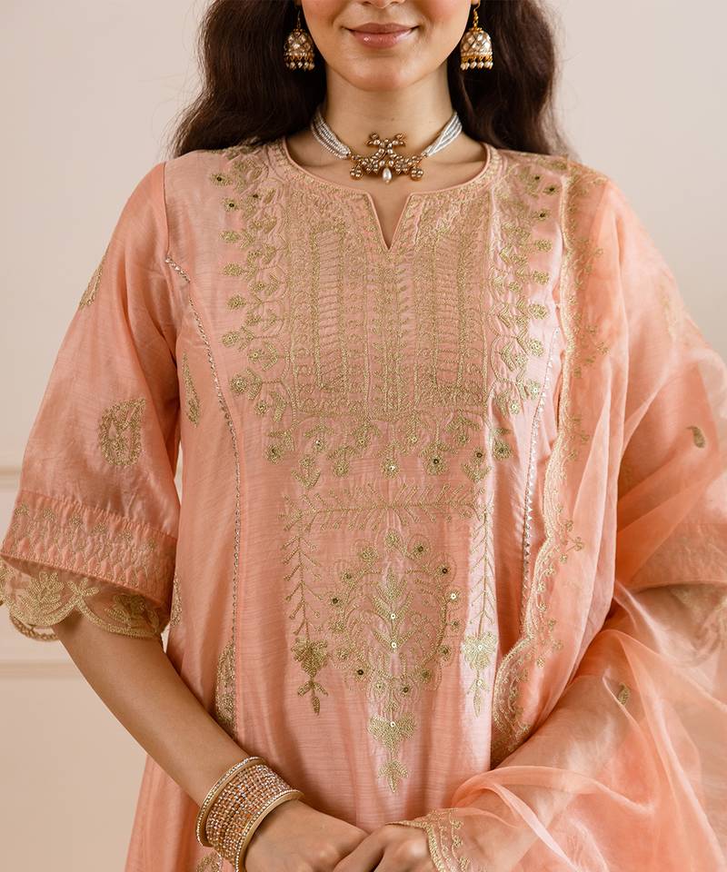 | Product Name | Peach Embroidered Chanderi Kurta Set | |