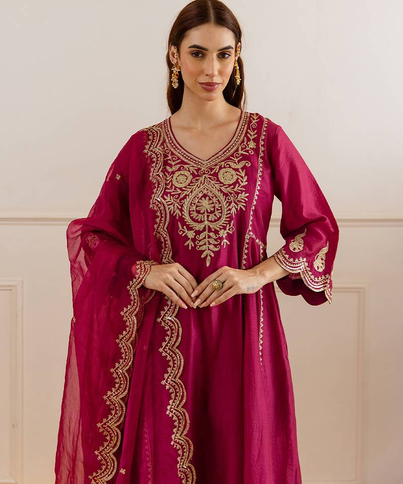 | Product Name | Red Embroidered Chanderi Kurta Set | |