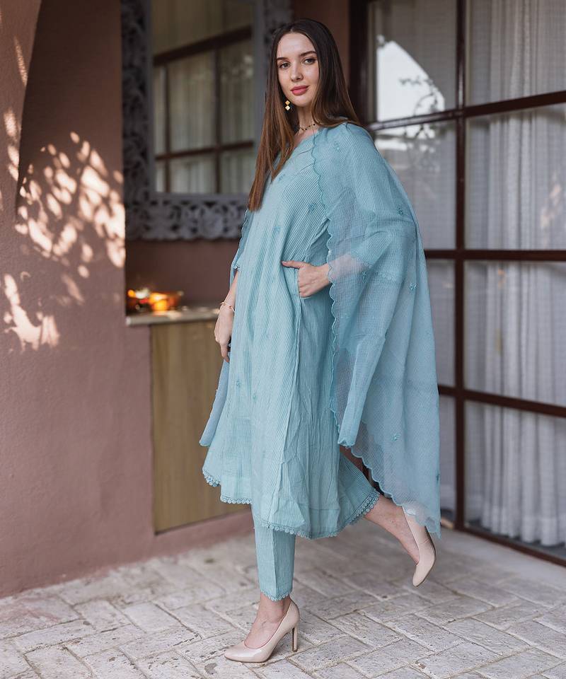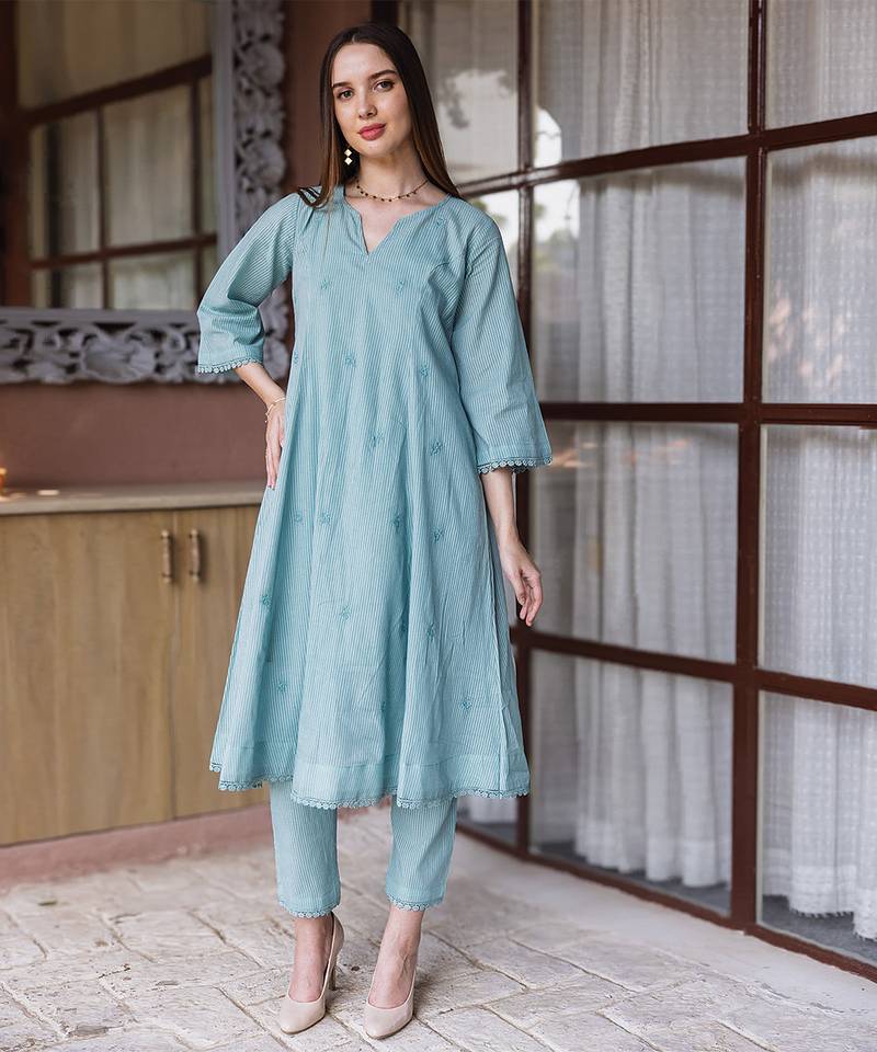 | Product Name | Blue Embroidered Cotton Straight Suit Set | |