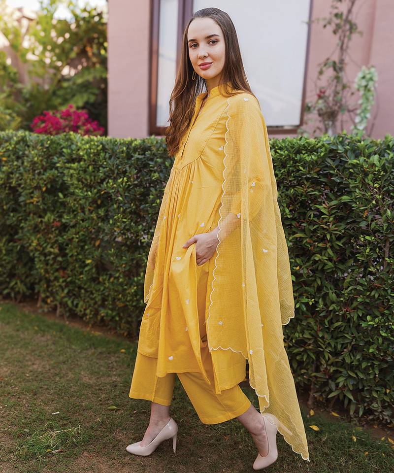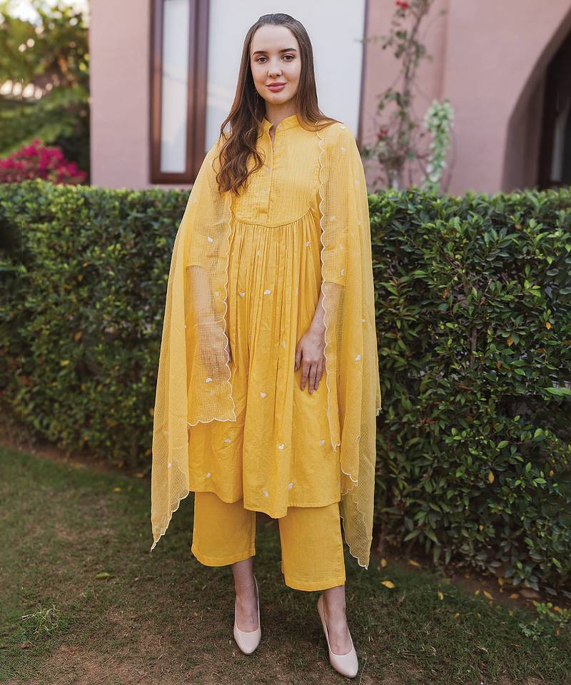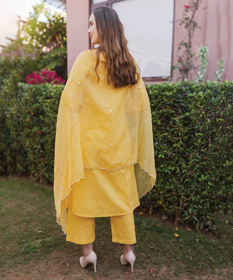 | Product Name | Yellow Embroidered Cotton Straight Suit Set | |
