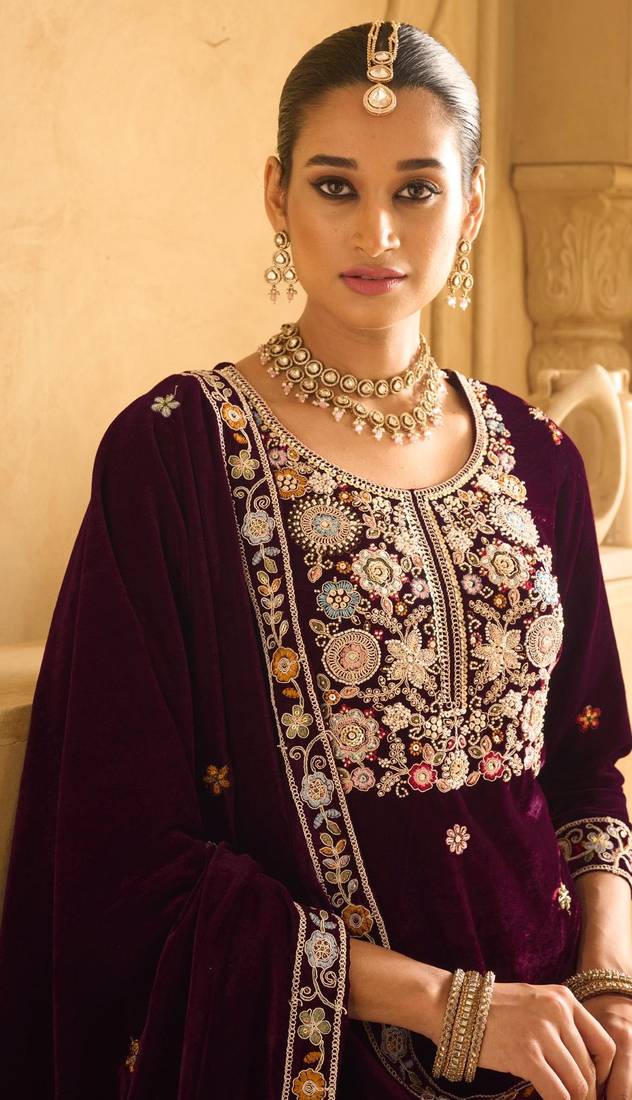 | Product Name | Maroon Embroidered Velvet Palazzo Suit | |
