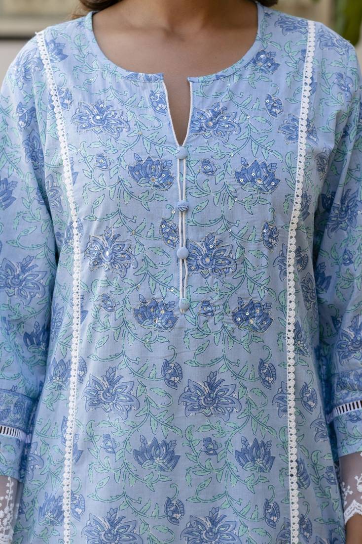 | Product Name | Samiha Sky Blue Printed Cotton Kurta Sets | |