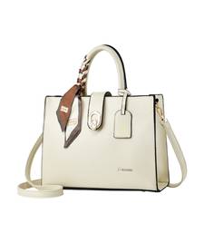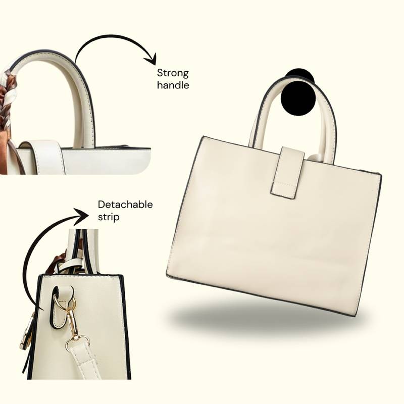 The Classic Handbag Is An Elegant Structured Tote Designed For The Modern Professional Woman. Crafted From Premium Pu Leather With A Smooth Finish, This Sophisticated Handbag Combines Style With Functionality For Office Workers And Professionals Alike. The Rectangular Silhouette Features Beautiful Gold Hardware And Comes With A Decorative Silk Scarf Accent That Adds A Touch Of Refined Elegance. Measuring 35 Cm In Length, 30 Cm In Height, And 35 Cm In Width, This Medium Sized Tote Offers A Generous 15 Litre Capacity Whilst Maintaining A Lightweight Profile At Just 800 Grams. The Bag Is Thoughtfully Organised With 3 Main Compartments, 4 Pockets Including An Interior Zip Pocket, And 2 Zippered Compartments, Providing Ample Space For Your Laptop, Documents, And Daily Essentials. The Fabric Lined Interior Ensures Your Belongings Stay Protected. It Features Dual Top Handles For Classic Carrying And Includes A Detachable 120 Cm Adjustable Shoulder Strap In Matching Colour, Offering Versatile Wearing Options. With Its Solid Pattern And Classic Design, This All Season Handbag Is Perfect For The Office Or Professional Settings. The Vegan Leather Construction Makes It A Stylish Choice For The Conscious Consumer. Included Components: Handbag And Detachable Sling Strap.